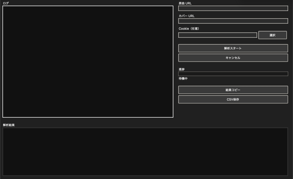 音程測定アプリ「KeyDiff」 AIテクノロジーコース(後・末) 2026.01.21 目次 開発理由主な機能使用技術実際のアプリ画面 開発理由 歌いたい曲のキーがわからず困った経験があり、このアプリを作りました。 主な機能 yt-dlp を使用してYouTube動画から音声を自動ダウンロード楽曲全体のキー推定楽曲を時間区間ごとに分割転調の発生タイミングを自動検出解析開始のワンクリック操作結果をリアルタイム表示などをすることができます。 使用技術 Python 3Tkinterlibrosanumpyyt-dlpffmpegを使用しました。 実際のアプリ画面