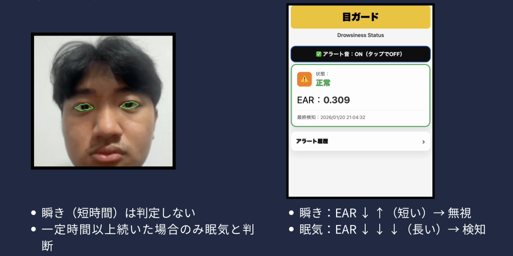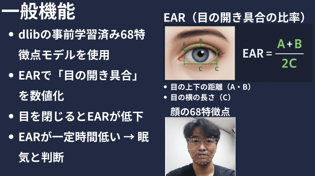 - EAR(目の開き具合)のリアルタイムグラフ表示