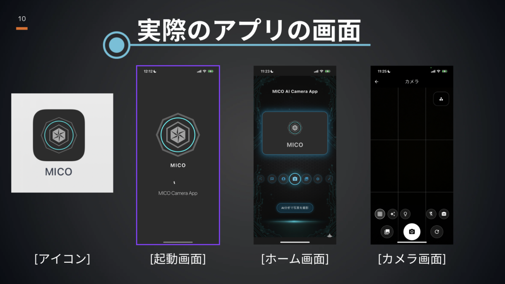 この、人の感性とテクノロジーのギャップを埋めるべく、前期の個人制作としてAIカメラアプリ「MICO」を構想し、開発いたしました。MICOは単なる撮影ツールではなく、手の中の「クリエイティブ・パートナー」です。