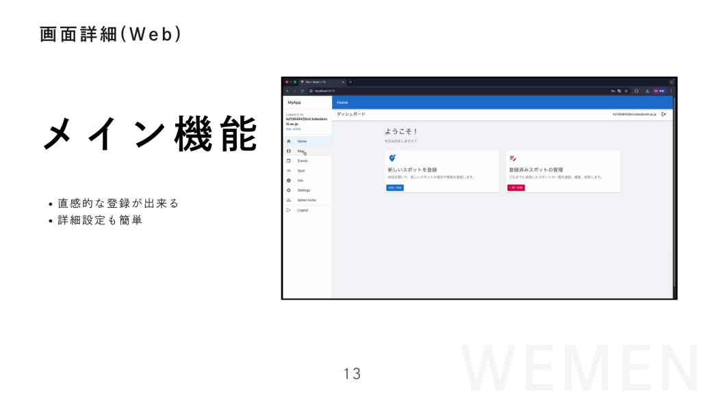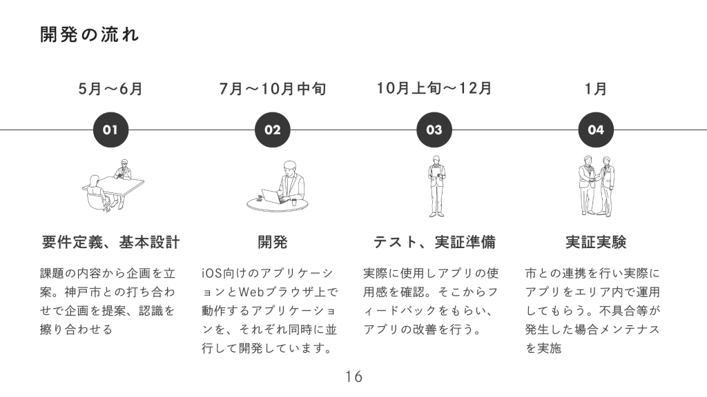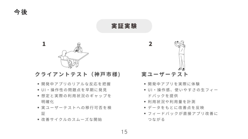 HAT神戸・ミュージアムロード周辺活性化実証実験 AIアプリケーションコース(後・中) 2025.09.242026.01.06 目次 チームA : ウォーメン目次 ・ 概要・ 詳細 デモ動画 チームA : ウォーメン 目次 ・ 概要・ 詳細 デモ動画