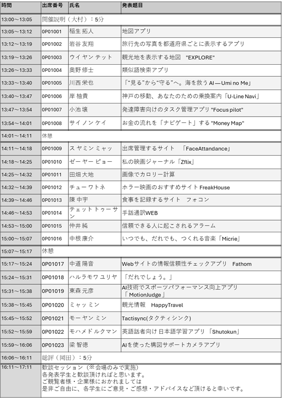 神戸電子専門学校AIシステム開発学科「2025年度前期中間発表会」にお申込み頂き、誠にありがとうございます。発表会実施日は2025年7月2日(水)です。